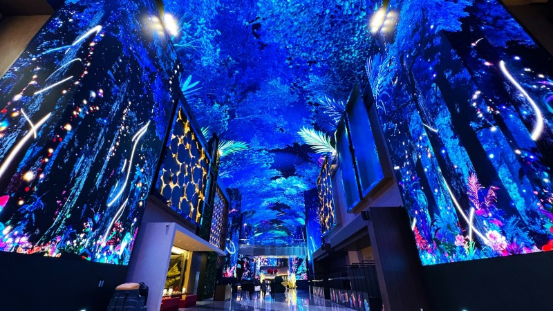 인스파이어의 가장 큰 강점은 ‘숙소 하나로 일정이 완성된다’는 점이다. 일반적인 호텔은 객실 컨디션이나 조식 정도가 핵심이라면, 이곳은 호텔을 넘어 리조트 전체가 하나의 콘텐츠처럼 구성되어 있다. 객실에서 쉬는 시간만으로 끝나는 것이 아니라, 내부를 걷는 것 자체가 구경이 되고 사진을 남기게 되는 공간들이 많다. 특히 많은 사람들이 인상적으로 느끼는 부분은 오로라 같은 시그니처 공간이다. 천장과 벽면을 따라 이어지는 화려한 연출은 단순한 장식이 아니라, 리조트 전체의 분위기를 결정하는 핵심 요소처럼 작용한다. 그래서 이곳은 숙박 후기보다도 ‘직접 보면 규모감이 다르다’는 반응이 자주 나오는 편이다.